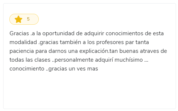 "Excelente las enseñanzas, una explicaciones muy minuciosas para tener un muy buen entendimiento, muchas gracias"
